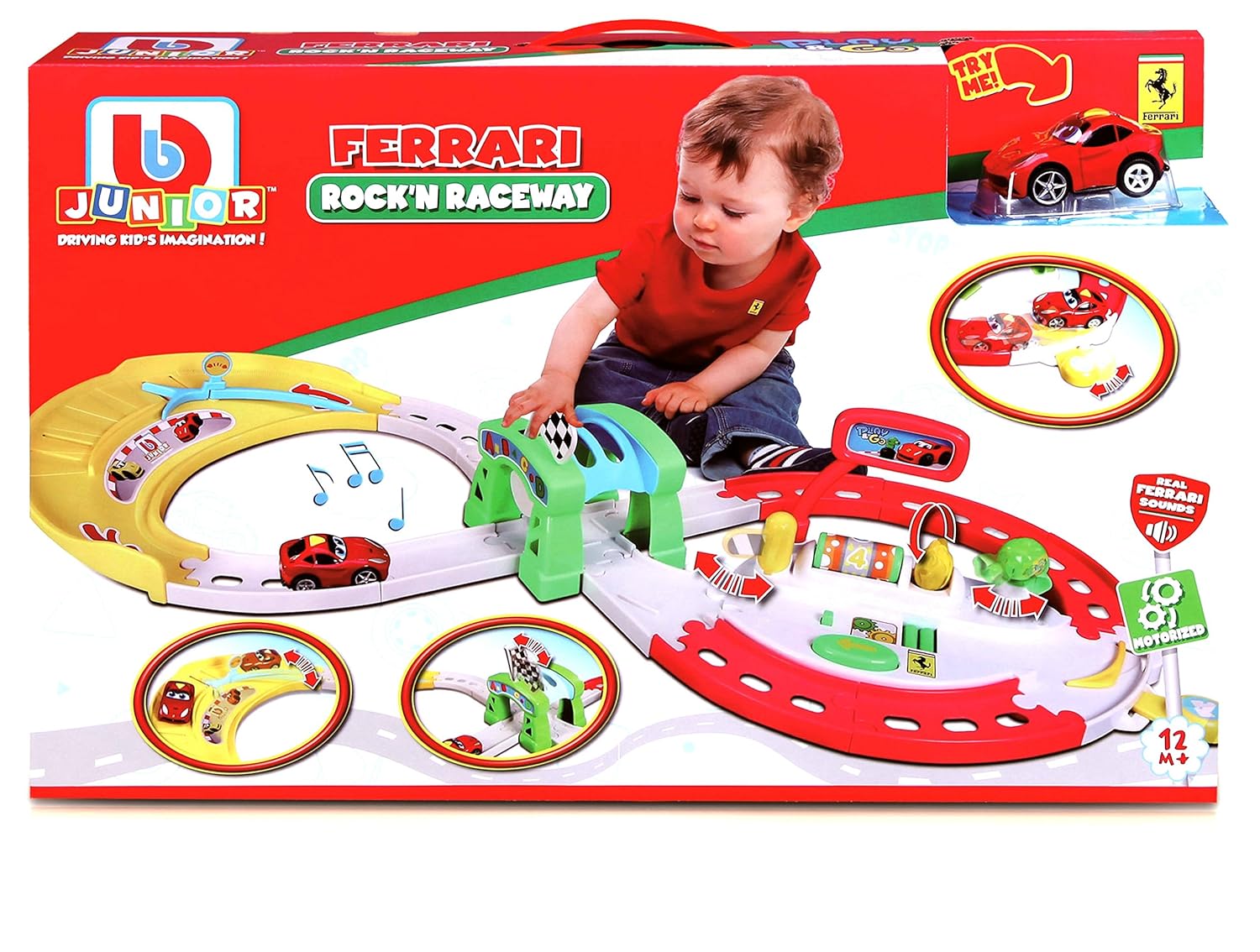 Get ready for an exciting adventure with the BB Junior Ferrari Rock & Raceaway! This fantastic toy combines the thrill of a race car with engaging play features, perfect for your little one's development.